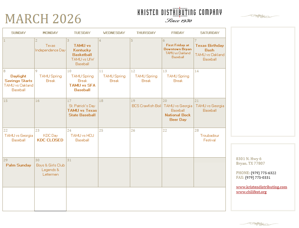Kristen Distributing Company is proud to celebrate 95 years of serving the Brazos Valley and surrounding communities. Since 1930, we’ve been dedicated to delivering quality products, supporting local businesses, and building lasting relationships with our partners and customers. We’re excited to share our official press release, which highlights our history, growth, and commitment to the community as we mark this milestone. 95YR Press Release